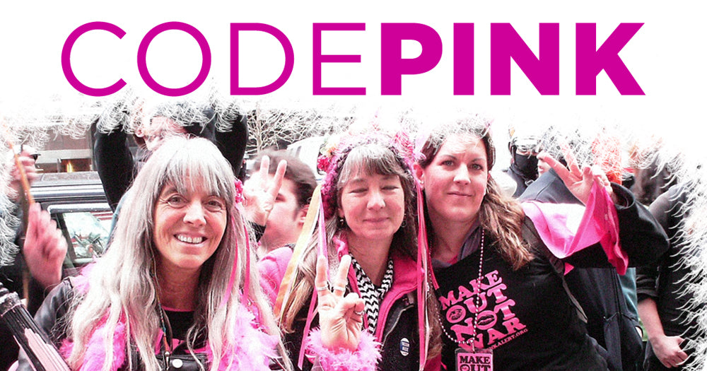 CODEPINK's Online Store has a vision: to function as part of the global village- effectively supporting sustainable and socially responsible products, services and businesses. All PINK, of course! To this end, our t-shirts are made sweatshop free. Your purchase helps support our ongoing work to build a global movement for peace. If you know of a product or company that fits into our mission, please email info@codepink.org!!